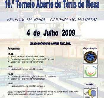Quando se joga o 10º Torneio Aberto de Ténis de Mesa, organizado pelo Clube de Caça e Pesca de Oliveira do Hospital e Agrupamento de Escolas da Cordinha, as atenções voltam a centrar-se em Ervedal da Beira, onde decorreu a final da Taça de Portugal de Ténis de Mesa.