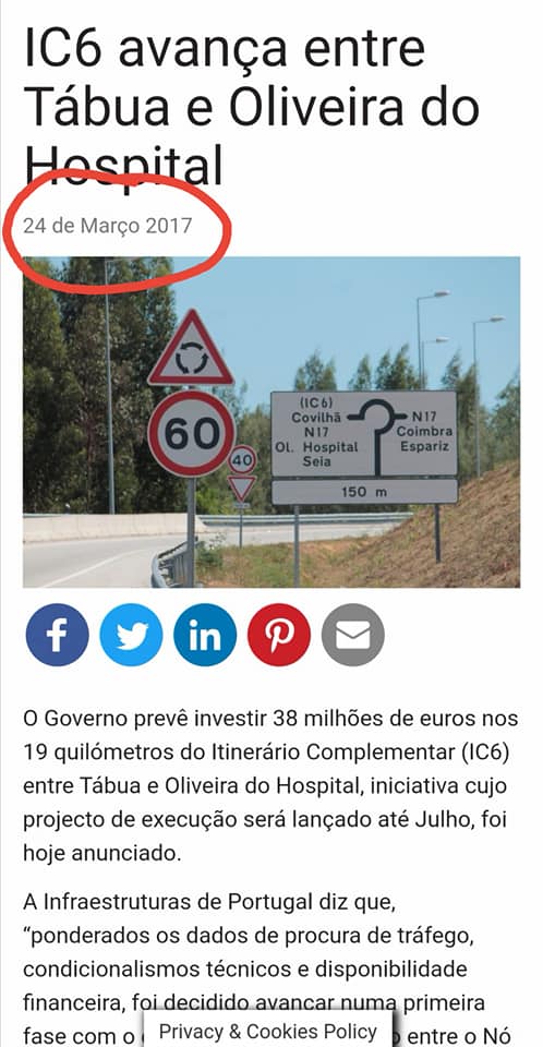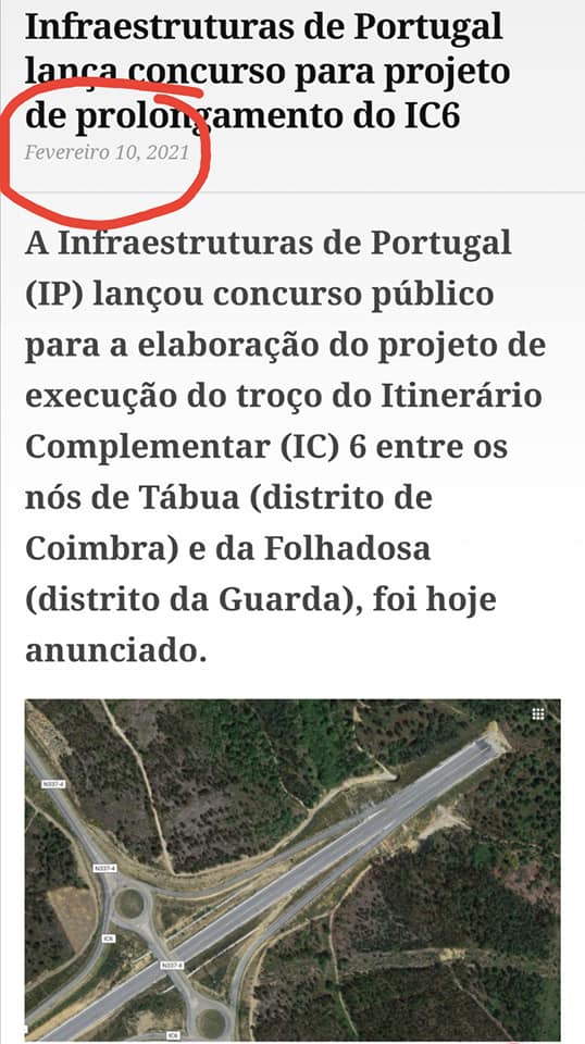 mesmo IP anuncia o concurso para o projeto. Mas afinal a obra andou para trás? Passou de adjudicada a concurso para o projecto? Ou foram buscar o comunicado antigo ou é mais um erro de “casting”, até porque no documento enviado para Bruxelas acerca das obras prioritárias não aparece em lado nenhum a referência ao IC6, nem nas “last-miles”..