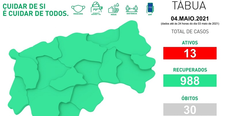 O concelho de Tábua soma 13 infecções activas de Covid-19. Desde a passada sexta-feira, cinco pessoas recuperaram da doença e surgiu um novo caso. O Município presidido por Mário Loureiro, recorde-se, na passada quinta-feira, também integrava a lista de concelhos “em risco” apresentado pelo governo, por apresentar uma taxa de incidência de contágio de mais de 120 casos por 100 mil habitantes e, por isso, arrisca-se a recuar no desconfinamento.