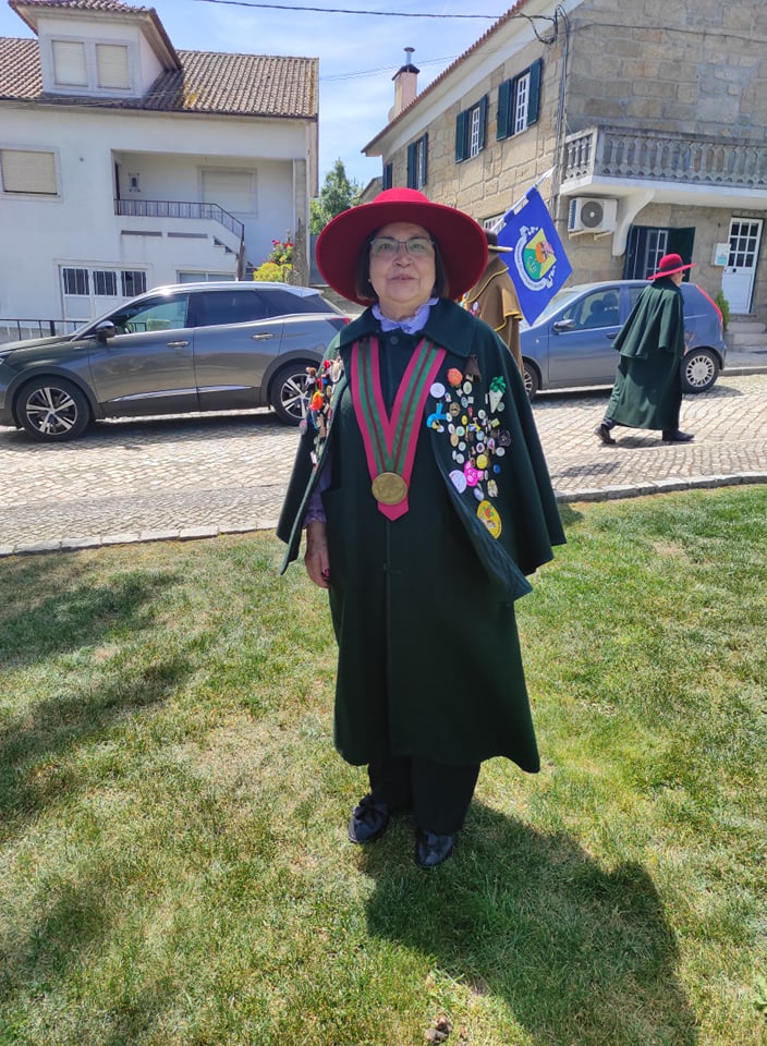 “É algo para o qual não temos explicação”, sublinha, frisando, no entanto, que o traje da confraria procurou essa faceta da vila de Ervedal da Beira. Esmeralda Albuquerque, que trabalhou em conjunto com a designer Cláudia Grilo Quaresma, conta que a capa em burel verde escuro representa a folha do medronheiro e o chapéu vermelho a cor do fruto, medronho. Já insígnia é amarela para contemplar as três cores da bandeira nacional. Cláudia Grilo Quaresma desenhou tudo. A produção dos trajes foi entregue a Jaime Martins, um especialista em fardas estabelecido em Penacova. Isto depois de uma reunião, convocada por Esmeralda Albuquerque, que também escreveu a letra do hino da confraria, com aqueles que produziam bolo finto e licor de café, bem como com os presidentes das instituições da vila. O objectivo era apresentar-lhes o projecto e convidá-los para serem dos primeiros confrades …. Aceitaram e concordaram com as restantes propostas que lhes foram apresentadas.