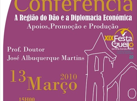 Integrada na programação da XIX Festa do Queijo e outros produtos locais de qualidade, a conferência designada por “A Região do DÃO e a Diplomacia Económica. Apoios, Promoção e Produção” é organizada pela Associação para a Promoção da Região do Dão – APRDÃO com o apoio da Câmara Municipal de Oliveira do Hospital.