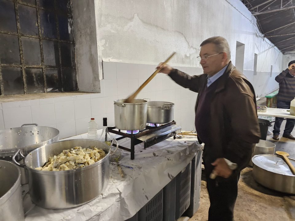 O empresário Fernando Tavares Pereira vestiu ontem mais uma vez a sua faceta de mestre de cozinha e confeccionou a sua já tradicional tiborna, um prato ligado à prova do azeite novo. O evento, que já tem dezenas de anos, voltou a oferecer a dezenas de convivas a oportunidade de repetirem esta refeição confeccionada com rara mestria pelo líder do grupo empresarial TAVFER e outros experimentaram pela primeira vez a iguaria ficaram rendidos. Foi o caso do ex-líder do PSD Rui Rio que no final não se cansou de elogiar o cozinheiro e a qualidade dos produtos utilizados na confecção dos 140 quilos de tiborna que serviram para satisfazer dezenas de convivas que, mais uma vez, se juntaram no lagar do empresário em Vila Nova de Tazem, concelho de Gouveia.
