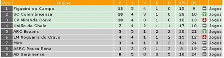 A equipa de Nogueira do Cravo continua, contudo, no comando da tabela classificativa com mais um ponto, no total de 15, ao lado do Penalva do Castelo, que na segunda posição tem menos golos marcados.