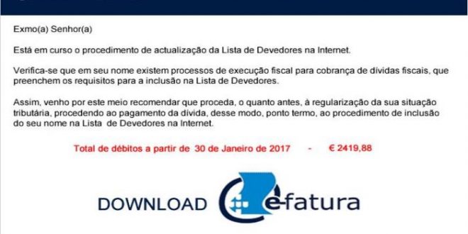 As Finanças esclarecem que o objectivo dos infractores passa por convencer o destinatário a descarregar um ficheiro com conteúdo malicioso. “Em caso algum deverá efectuar essa operação”. No email falso, argumenta-se que se estará a proceder à actualização da lista de devedores.