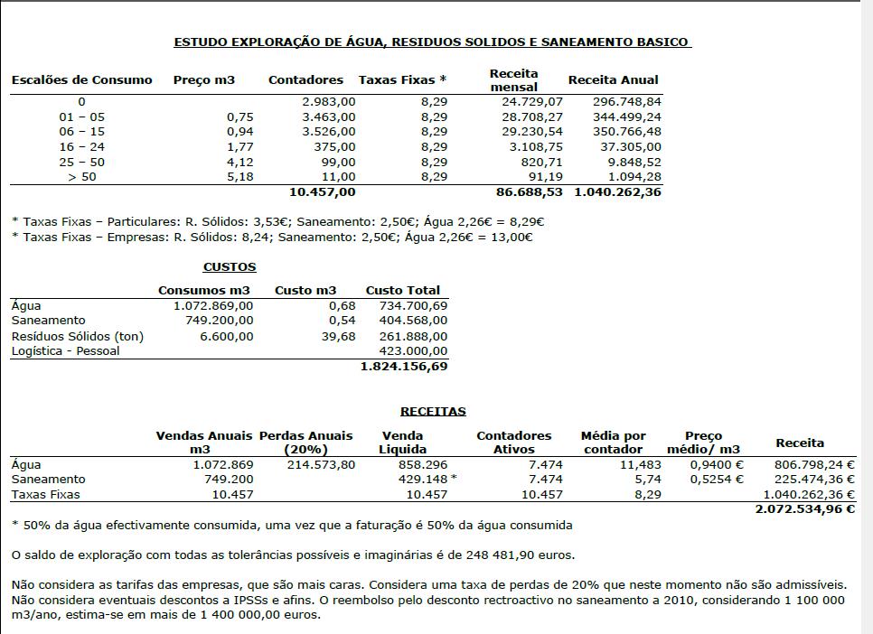 Estes novos elementos vieram confirmar a convicção de António Lopes de que o negócio da água estar a permitir um lucro próximo dos 250 mil euros à autarquia. “Desde a primeira hora que denunciámos isso. Aliás um aumento de 67 por cento de uma só vez num momento de crise, só mesmo quem não tem sensibilidade para as dificuldades que as famílias vivem”, explica, sublinhando que é “ainda mais escandaloso quando a principal rubrica do orçamento da Câmara é para cultura, desporto e tempos livres (leia-se festas e bola) num valor superior a 1,2 milhões de euros”, remata.