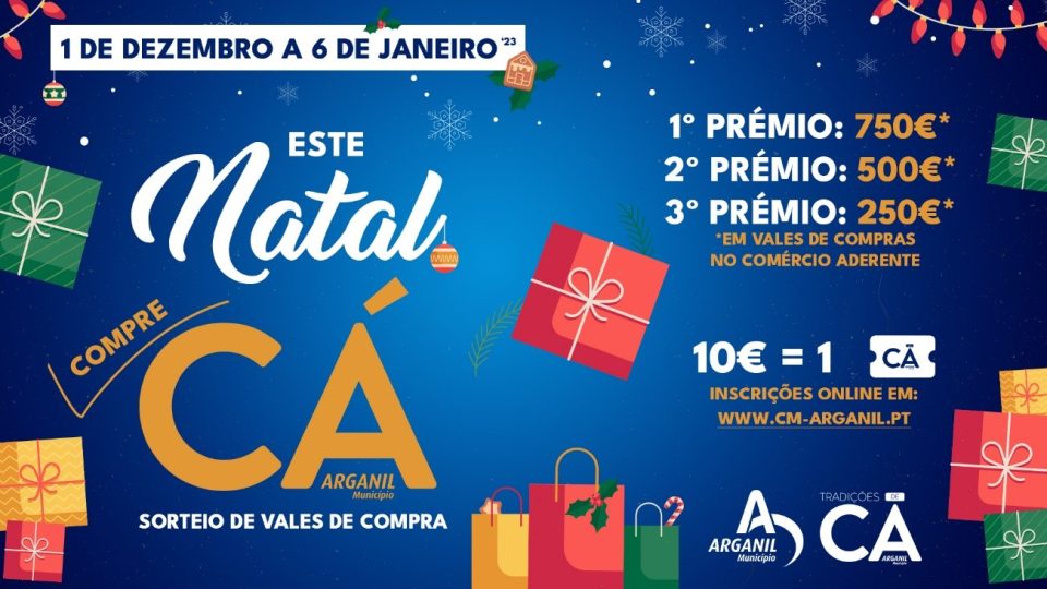 O município volta a promover durante a quadra natalícia a iniciativa de dinamização do comércio local designada por “Este Natal compre CÁ” que premeia aqueles que de 1 de Dezembro e 6 de Janeiro 2023 realizem as suas compras no comércio local e tradicional. Os prémios variam entre os 250 e os 750 euros em vales de compras no comércio aderente.