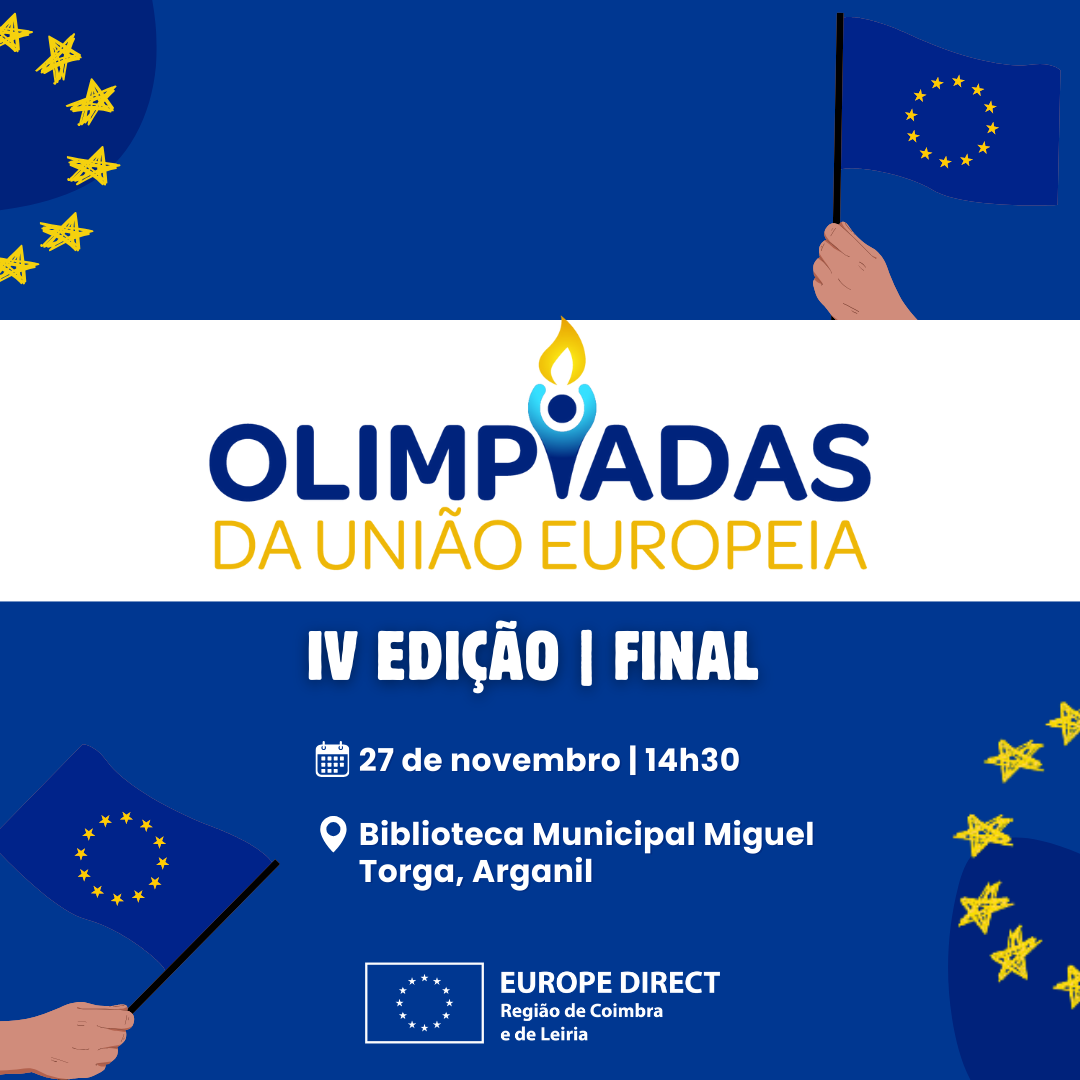 O EUROPE DIRECT Região de Coimbra e de Leiria recebe a final da IV Edição das Olimpíadas da União Europeia, que terá lugar amanhã, pelas 14h30, no Auditório da Biblioteca Municipal de Arganil.