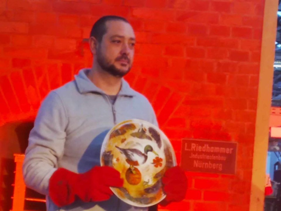 Momentos depois, e na presença dos presidentes das Câmaras Municipais de Ílhavo João Campolargo e a de Aveiro, Ribau Esteves, além de responsáveis desta unidade que integra o Grupo Visabeira, procedeu-se à apresentação formal da primeira peça produzida em 2024, um prato calendário cujas fases de feitura foram sendo mostradas em vídeo. Autêntica obra de arte, esta peça remete-nos para a história da empresa, com representação de várias figuras, desde o fundador da Vista Alegre, José Ferreira Pinto Basto, os camelos que transportavam as loiças desde a fábrica até ao porto de Aveiro (forma de transporte usada pela Vista Alegre em tempos idos para não haver quebras das peças) até uma bola de futebol, idêntica àquela que entrou em campo no dia 22 de janeiro de 1889, há 127 anos, no primeiro jogo oficial de futebol internacional realizado em Portugal, nos terrenos onde agora está instalada a Praça de Touros do Campo Pequeno, que opôs uma seleção lusa e a Inglaterra, jogo favorável às nossas cores e que foi promovido pelos bisnetos do fundador da Vista Alegre.