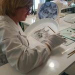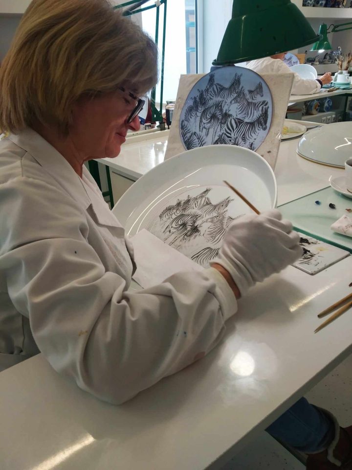 A contribuição de artistas estrangeiros, tais como Victor Rousseau, foi importante, sobretudo para a criação de uma escola de pintura, ainda hoje famosa. E foi neste espaço que encontramos cerca de uma vintena de artistas – uma delas com 44 anos de casa – pintando à mão uma peça que, como tantas outras ali patentes, podem atingir valores superiores a 2 mil euros.