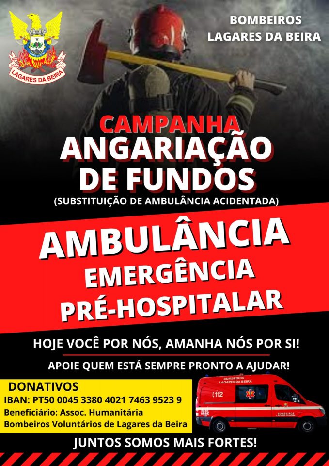 Os Bombeiros Voluntários de Lagares da Beira, concelho de Oliveira do Hospital, estão a promover uma angariação de fundos para conseguir verba suficiente para substituir ou reparar a ambulância de emergência que na terça-feira se despistou durante uma deslocação ao Centro Hospitalar da Universidade de Coimbra. O acidente, que se terá ficado a dever a fluídos existentes na via, não causou feridos, apenas danos materiais.