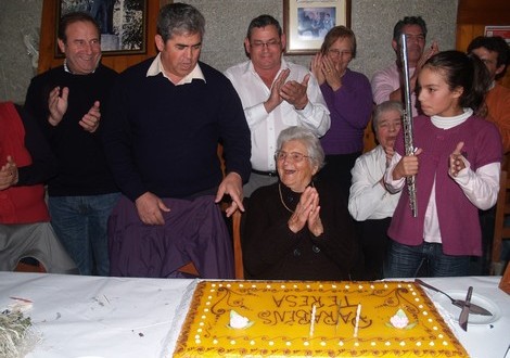 A família socialista compareceu em peso no repasto e o momento alto teve lugar quando a quase centenária senhora, ladeada pelo filho – o agora presidente da Assembleia Municipal de Oliveira do Hospital, António Lopes – e por o presidente da Câmara, José Carlos Alexandrino, viu várias dezenas de convidados cantarem os parabéns “à menina Teresa”.