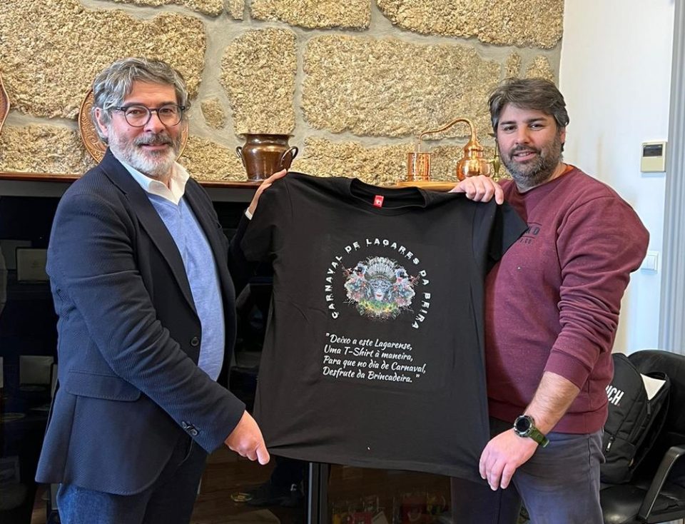 A Comissão do Carnaval de Lagares da Beira 2023, representada por José Pinto, entregou esta tarde, uma simbólica lembrança ao presidente do Município de Oliveira do Hospital, José Francisco Rolo. A camisola alusiva àquele que é um dos carnavais com mais história na Beira Serra contém uma mensagem que faz referência às tradicionais “Deixas”, momento incontornável do Carnaval daquela vila.