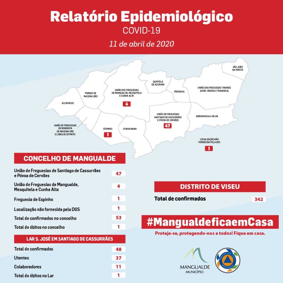 O concelho de Mangualde está a viver um verdadeiro momento de catástrofe com a COVID-19. Aquele município viu surgirem 32 novos casos em apenas 24 horas, passando para um total de 53 casos. Existe também já uma vítima mortal no lar de S. José em Santiago de Cassurrães, precisamente o local onde se situa o maior número de infectados.