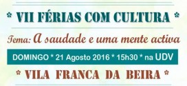 “A saudade e uma mente activa” é o tema da VII edição do evento “Férias com cultura” que se realiza no próximo domingo na União Desportiva e Tuna Vilafranquense (UDV), em Vila Franca da Beira. A ideia desta iniciativa partiu do professor Renato Nunes, um vilafranquense a leccionar nos Açores, …