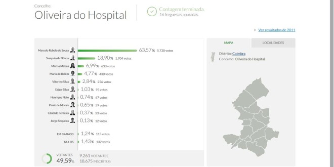Marcelo Rebelo de Sousa venceu no concelho de Oliveira do Hospital com 63,57 por cento dos votos, contra 18,90 por cento de Sampaio da Nóvoa. Venceu também em todas as freguesias. Marisa Matias conseguiu 6,99 e Maria de Belém 4,77 por cento. Seixo da Beira foi onde Marcelo conseguiu a …