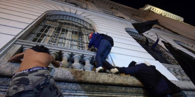 Ler Mais »Um grupo de manifestantes arrombou, na noite de quarta-feira, a porta da Câmara Municipal do Rio e entrou no edifício. A Polícia Militar só conseguiu retirar os ocupantes cerca de uma hora depois.
