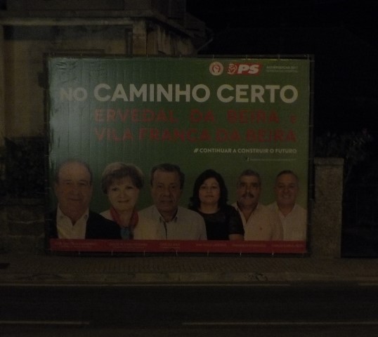 “Esta colocação deste cartaz viola em diversas questões a Lei, a saber: 1º, por Edital publicado em 14 de Agosto de 2017 pelo Presidente da Câmara e que se anexa cópia estabelece que em Ervedal o único local de colocação de cartazes será na praceta Liga de Melhoramentos, este cartaz esta fora desses limites e a menos de 500 metros da mesa de votos; 2º, pensamos o outdoor não estar autorizado até porque está na via pública e junto ao chão; 3º pensamos, para não afirmarmos, que este outdoor era o que foi utilizado pela Câmara para divulgação da obra da Avenida Nova, ou seja pago por todos nós”, remata o candidato.
