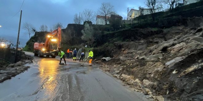 Os trabalhos incluíram a utilização de escavadoras e camiões, permitindo a limpeza da estrada e a estabilização da área afectada, com o objectivo de garantir condições de segurança para a circulação rodoviária.