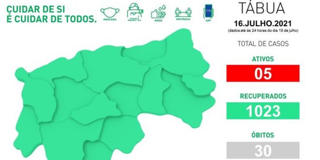 O concelho de Tábua conta nos últimos três dias com dois novos casos de COVID-19, num total de cinco infectados. Município, que esteve vários dias sem casos, voltou a debater-se recentemente com a pandemia. E neste período de três dias nenhum dos pacientes recuperou. No total, o concelho tem 1023 casos recuperados e 30 óbitos. “O Município de Tábua recomenda à população a continuação do cumprimento das normas da DGS, por forma a travar a propagação do vírus COVID-19”, pede a autarquia.