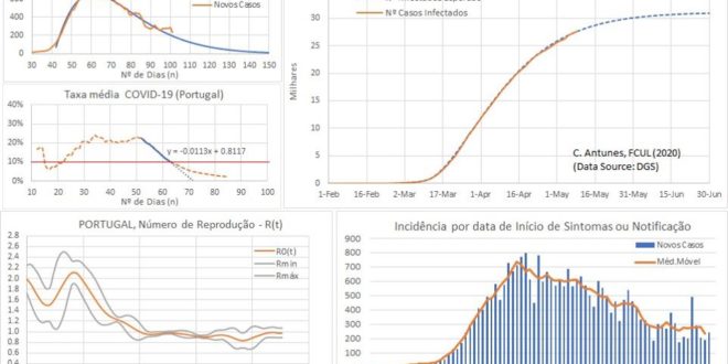 Com este valor de R0 na zona de 1.0 é de esperar que o número de novos casos de Covid-19 em Portugal se mantenha entre 200 e 300. A par do facto de estarmos a recuperar muito lentamente os infectados activos, a prevalência da infecção ir-se-á prolongar muito para lá de Julho. Nessa altura, ainda com valores, muito provavelmente, acima dos 10 mil casos de infectados activos.