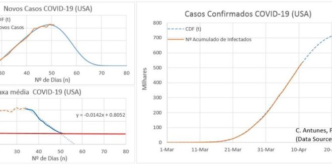 Os EUA e o Canadá estão agora atingir o pico de casos novos, depois de ambos os países terem começado a epidemia com os primeiros casos por volta de 20 de Fevereiro. Mais de um mês e meio, pelo que, e aparentemente (pois ainda é cedo para se confirmar), a sua curva de novos casos diários apresenta uma assimetria à esquerda. Contudo, a curva de casos de infectados activos ainda está na sua fase de ascensão, pelo que os hospitais ainda vão demorar algum tempo até começarem a ver os seus números a estabilizarem, e depois a reduzirem.