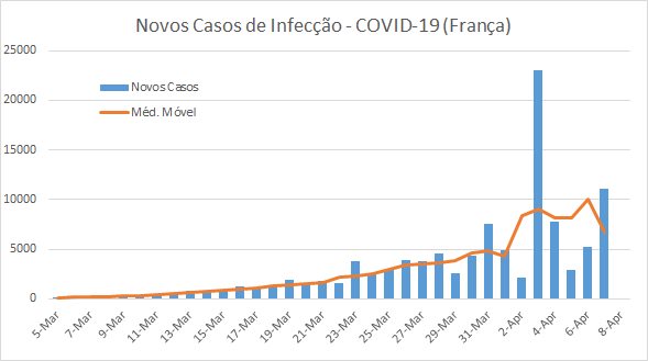 É o 3º caso de grande preocupação na Europa, depois da Itália e da Espanha, que já começaram a ter uma diminuição do número de novos casos, ou seja, já passaram pelo pico. Enquanto que a França ainda está a alguns dias de lá chegar perto.
