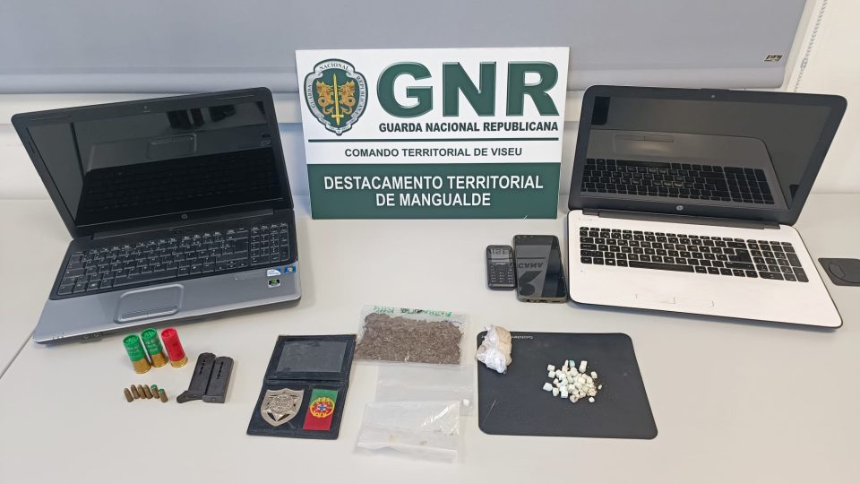 No seguimento da investigação policial, a GNR realizou três buscas domiciliárias e uma busca em veículo, culminando na apreensão de 75 doses de cocaína, 40 doses de heroína, seis doses de cannabis, dois computadores, dois carregadores, um veículo, diversas munições e uma carteira e distintivo profissional em uso nas forças de segurança.