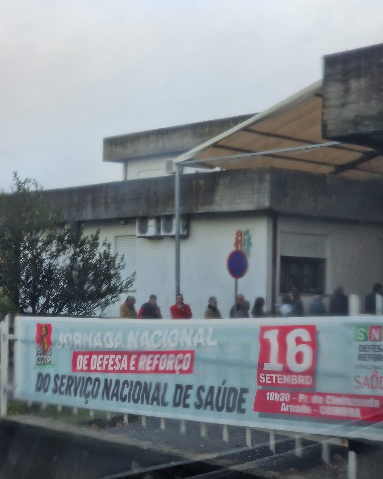 Dezenas pessoas ao frio esperam por uma consulta à porta no Centro de Saúde de Oliveira do Hospital