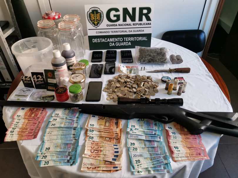 No decorrer das diligências policiais, foi dado cumprimento a nove mandados de busca, seis domiciliárias e três em veículos, que culminou na apreensão do seguinte material: 269 sementes de canábis; 48 doses de canábis; uma arma de ar comprimido; cinco zagalotes; dois punhais; duas caixas de chumbo de calibre 4.5 mm e 3 405,5 euros em numerário. Os detidos foram constituídos arguidos, e os factos foram remetidos ao Tribunal Judicial de Guarda.