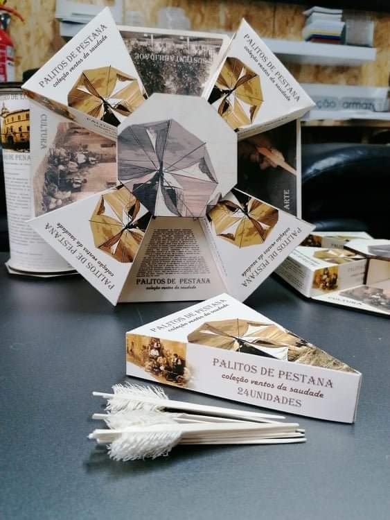 A embalagem de palitos, de formato triangular, foi concebida com cartão e madeira de choupo e inspirada nas velas de um moinho de vento. A ligação ao território, o fabrico artesanal, a sustentabilidade e a portabilidade foram traços comuns das duas dezenas e meia de produtos a concurso.