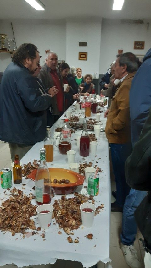 Em cima das mesas, já esperam as castanhas assadas bem escoltadas por garrafas com Vinho e até de “jorpiga” (jeropiga). “Vamos a elas! “– alguém comanda. E assim aconteceu.