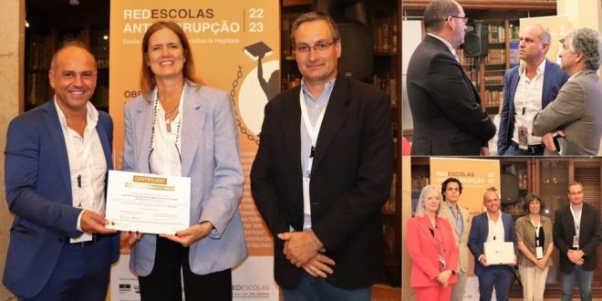 O Presidente da EPTOLIVA, Daniel Dinis Costa, acompanhado do Coordenador do Pólo de Tábua, Carlos Campos, estiveram presentes nesta cerimónia para receber o Certificado ‘Escola Embaixadora Anticorrupção 2022-23′ com a atribuição do Selo Digital Ouro do Programa RedEscolas Anticorrupção, uma iniciativa da Associação All4Integrity, uma organização que se dedica à prevenção e combate à corrupção, com vista a uma cultura de integridade em Portugal.