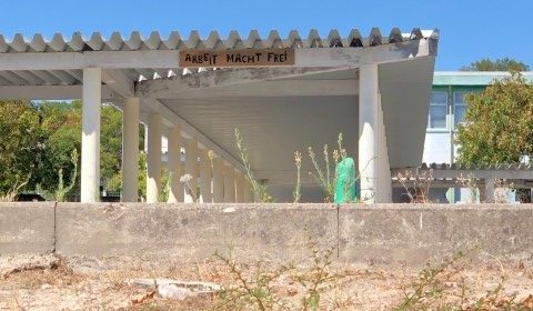 “É um símbolo com uma conotação extremamente negativa e que, numa sociedade democrática, só pode ser utilizado com muita contextualização e contenção. Para quem vê de fora esta situação é geradora de indignação e de estupefação. A placa vale por si, mas toda a situação ganha uma dimensão maior quando se insere num contexto mais vasto de visível degradação dos espaços exteriores da escola”, explicou ao CBS este professor que deu conta da placa, frisando também a existência de uma situação de quase abandono da escola.