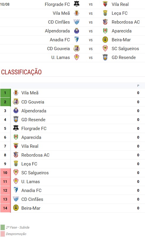 Já o CD Gouveia ficou colocado na Série B, onde defrontará Florgrade FC, Vila Real, Vila Meã, Leça FC, CD Cinfães, Rebordosa AC, Alpendorada, Aparecida, Anadia FC, Beira-Mar, U. Lamas, GD Resende e SC Salgueiros.