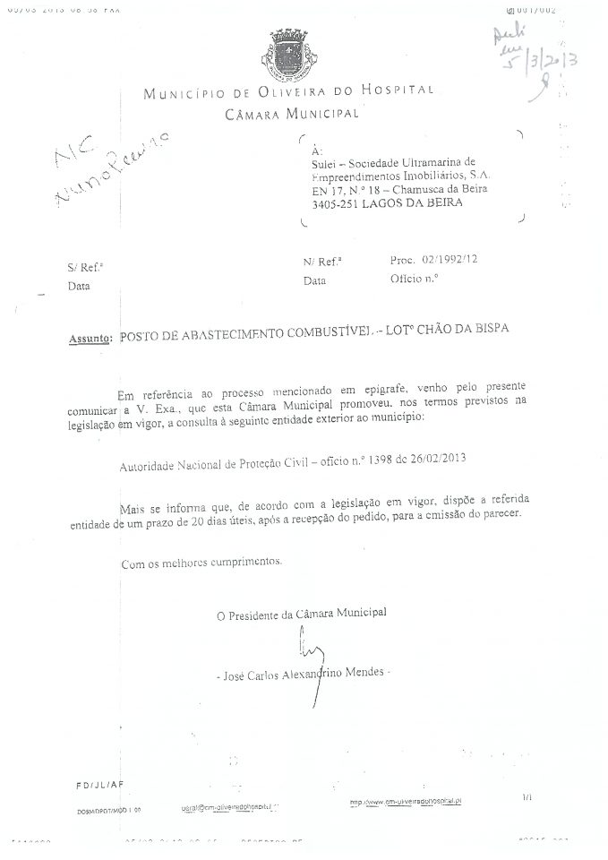 Fernando Tavares Pereira acusa Alexandrino de “mentir” no processo do posto de combustível, sublinhando que a autarquia de nunca ter respondido ao pedido para instalação de um posto de combustível no loteamento do Chão da Bispa. O empresário esclarece ainda que José Carlos Alexandrino está a “mentir” quando diz que não entrou nenhum requerimento na autarquia e mostra os documentos. Sugere ainda que seja feita uma “sindicância” à autarquia desde 2009 para aferir se todos os empresários são tratados da mesma forma no concelho.