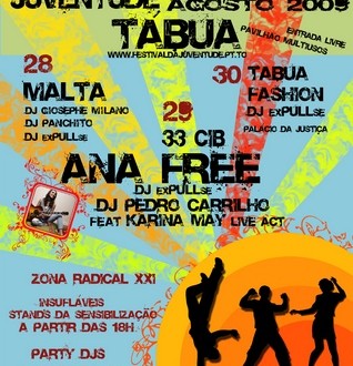 Na edição do Festival da Juventude deste ano, a Associação Juvenil Tábua XXI pretende “a organização de um Festival de música Jovem multifacetada”. Segundo refere a mesma associação numa nota de imprensa enviada a este diário digital, este ano o programa será “mais aliciante”, e irá contar com as actuações da revelação da música portuguesa, Ana Free, e os ritmos dance de Pedro Carrilho e Karina Mae, como cabeças de cartaz.