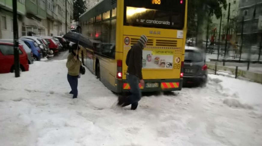 A temperatura baixa e a forte queda de granizo deixaram as estradas na zona de Benfica cobertas por um manto branco de gelo.