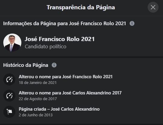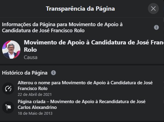 Uma das páginas é José Francisco Rolo 2021. O mesmo se passa com a página do Movimento de Apoio à sua Candidatura no Facebook que serviu em 2013 e 2017 as candidaturas de José Carlos Alexandrino. Também nesta os responsáveis da candidatura limitaram-se a trocar o nome sem divulgar publicamente esse dado. A página, que surge com o endereço https://www.facebook.com/josefranciscorolo2021 é onde estão a ser apresentadas alegadamente “mais de uma centena de cidadãos, de vários quadrantes políticos, que se terão juntado num Movimento de Apoio à Candidatura do socialista. Este movimento, que integra pessoas dos mais diversos sectores da sociedade, é liderado pelo Presidente do Sindicato dos Professores da Zona Centro