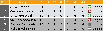 Com quatro vitórias, duas derrotas e um empate, a equipa de Oliveira do Hospital mantém-se na quarta posição , com 13 pontos. No domingo, 11 de novembro, o FCOH recebe o Torres Novas que é 11º classificado, com quatro pontos.