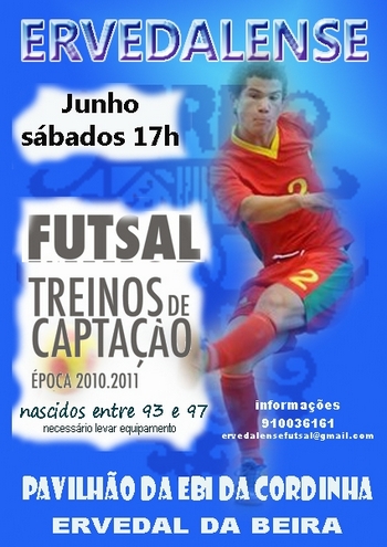 Decidida em preparar a próxima época desportiva e, em abrir as portas a jovens que não pertençam ao território da Cordinha, a Sociedade Recreativa Ervedalense inicia, no próximo sábado, os treinos de captação de jovens atletas, nascidos entre 1993 e 1997, interessados em praticar Futsal.
