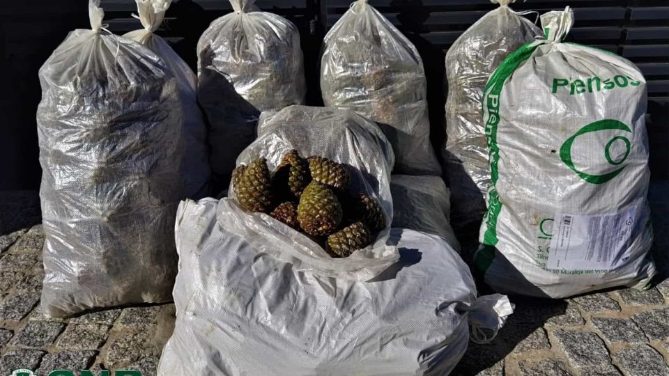 O Comando Territorial de Viseu da GNR no concelho de Mangualde, na sexta-feira, apreendeu cerca de 250 quilos de pinhas mansas, Pinus pinea e levantou um auto de contra-ordenação a um homem de 55 anos que se encontrava a colher pinhas mansas fora do período permitido na lei.
