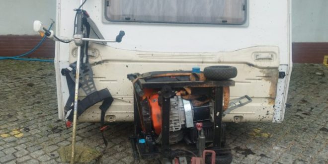 No âmbito de um pedido de cooperação transfronteiriça por furto em estabelecimento industrial, os militares da Guarda desenvolveram diligências policiais que permitiram identificar o suspeito, que tinha em sua posse os bens furtados em Espanha. No decorrer da acção foi realizada uma busca em armazém, culminando na apreensão do seguinte material furtado: uma caravana; um gerador; uma roçadora; duas caixas de ferramentas; Ferramentas variadas.