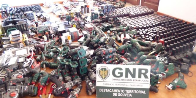 Durante as diligências, a GNR conseguiu apreender “439 pares de óculos de protecção, 433 pilhas eléctricas, 413 baterias para máquinas eléctricas, 230 ferramentas eléctricas a bateria, 208 pares de luvas de trabalho, 135 fitas métricas, 134 focos led, 50 lanternas de mão e 29 conjuntos de chaves de mecânica / bricolage”.