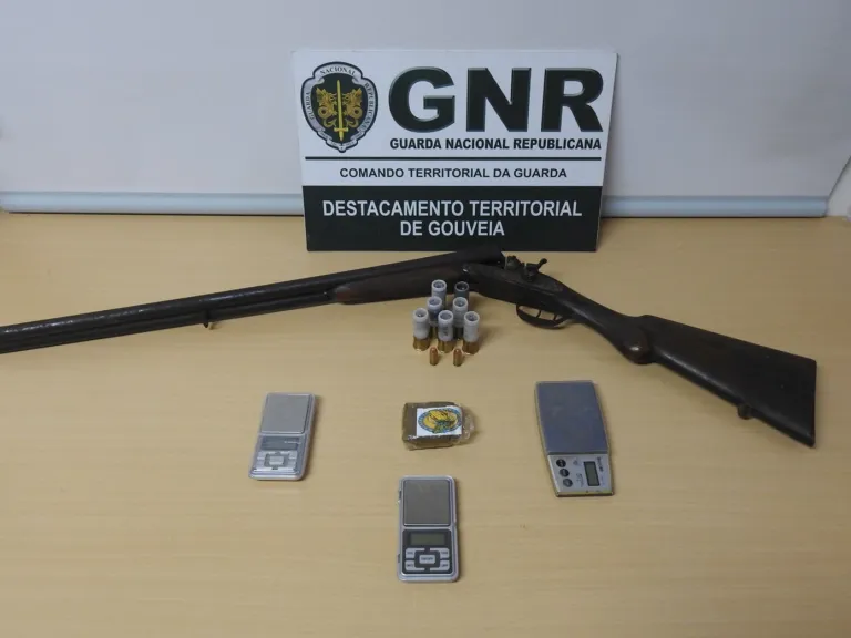 A GNR explica que “os militares deram cumprimento a dez mandados de busca, três domiciliárias, cinco em veículos e dois em armazéns, que culminaram na detenção de três homens”. Foram ainda apreendidas 144 doses de haxixe; uma caçadeira; três balanças de precisão; quatro telemóveis; sete cartuchos e duas munições.