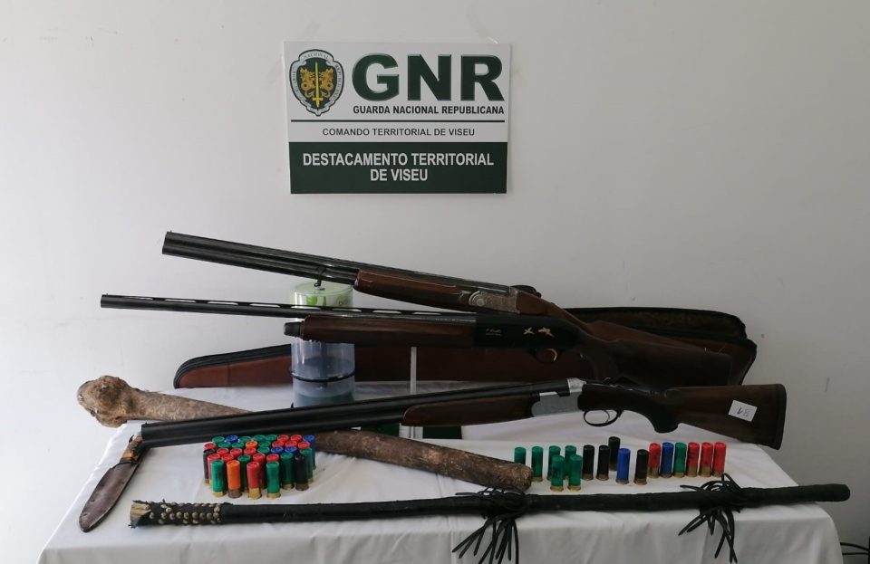 Os militares da Guarda deram cumprimento a cinco mandados de busca domiciliária e quatro mandados de busca em veículos, culminando na apreensão do seguinte material: três espingardas, 52 cartuchos, um punhal, duas mocas. Os detidos foram constituídos arguidos e os factos comunicados ao Tribunal Judicial de Viseu.