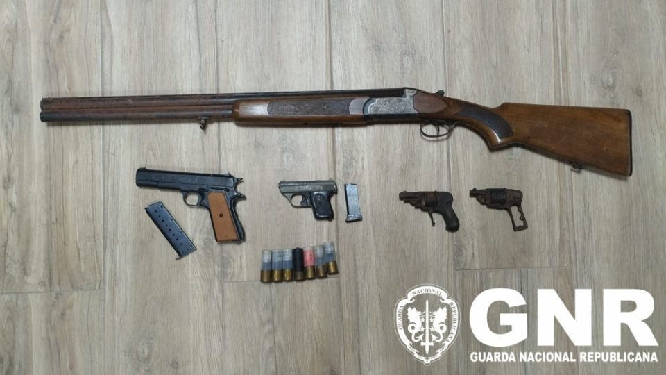 Durante as diligências policiais, foi dado cumprimento a um mandado de detenção, que culminou com a apreensão de uma espingarda, duas pistolas, dois revólveres e munições de diversos calibres.