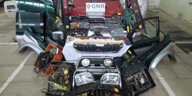 No local, a GNR apreendeu uma viatura furtada e os respectivos documentos, duas carroçarias de viaturas furtadas e várias peças, dez quadrantes de viaturas 4×4 furtadas, diversas cablagens de viaturas 4×4, 24 munições, uma carabina, 4,8 doses de haxixe e 1500 euros em numerário.