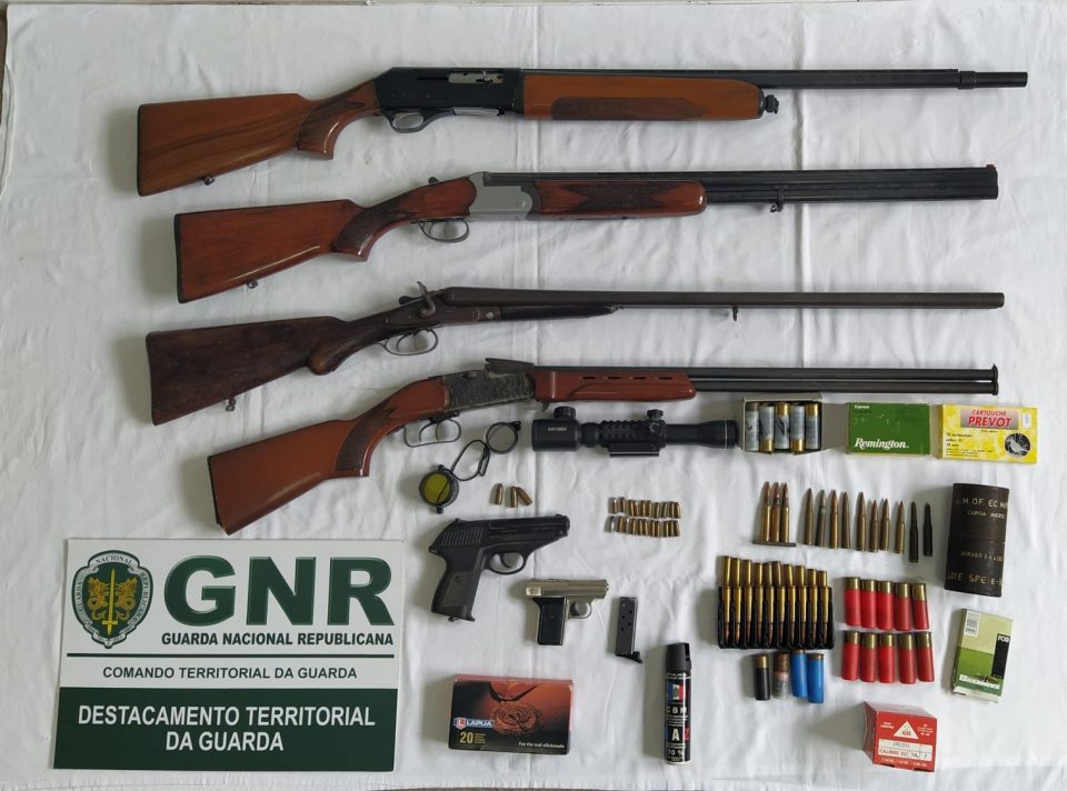 Foi realizada uma busca domiciliária na sequência da acção rodoviária, durante a qual foram apreendidas quatro espingardas, duas pistolas, gás pimenta, mira telescópica, diversas munições de diferentes calibres, e munições proibidas – 33 munições de calibre 7.62 mm, 26 cartuchos carregados com zagalotes e 17 cartuchos de projéctil único.