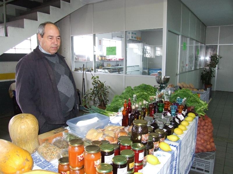 Edmar Rodrigues chega ao mercado municipal vindo de Alvoco das Várzeas. Depois de dezenas de anos no negócio da venda de pão dedica-se à produção de licores caseiros. A esposa apurou o jeito para as compotas, num curso de formação, e agora “junta-se o útil ao agradável”. Para este pequeno produtor que sempre cultivou o seu quintal, a participação nesta mostra representa uma ajuda “para a economia familiar” e “é também uma distração”. Aos licores e às compotas junta o mel, que também retira das suas colmeias e que é um dos produtos que mais vende, e muitos outros, como bolos, hortaliças e outros legumes, batatas ou limões.