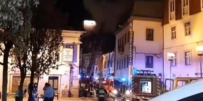 Um incêndio deflagrou na noite deste domingo, numa pensão na baixa de Coimbra, na rua da Sota. No combate às chamas estão, neste momento, 71 operacionais dos bombeiros apoiados por 24 veículos. Desconhecem-se ainda as causas do incêndio e se existem vítimas. Há notícia de duas pessoas que foram assistidas no local, mas encontram-se bem. As chamas estão aparentemente a diminuir e a PSP estabeleceu um perímetro de segurança.